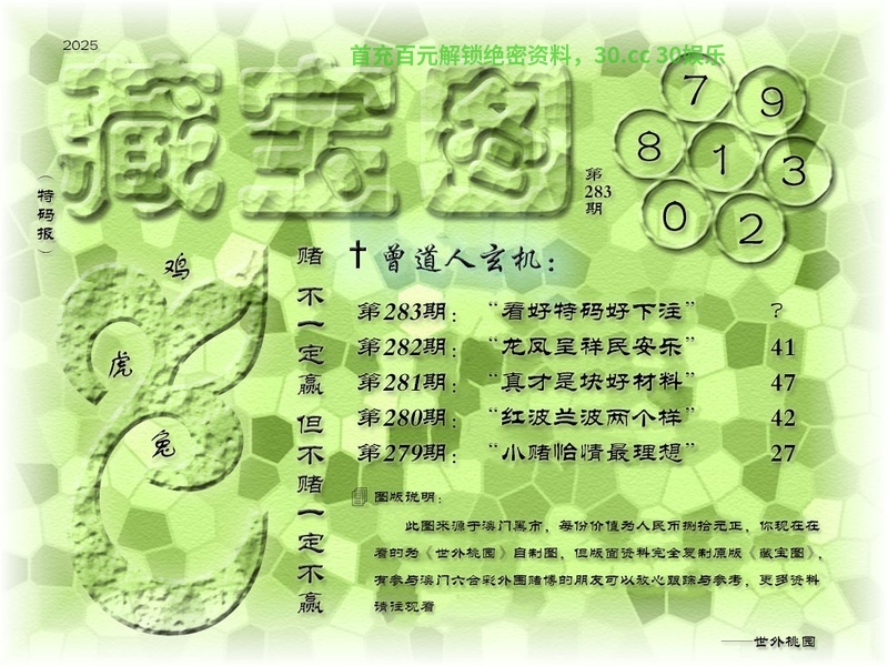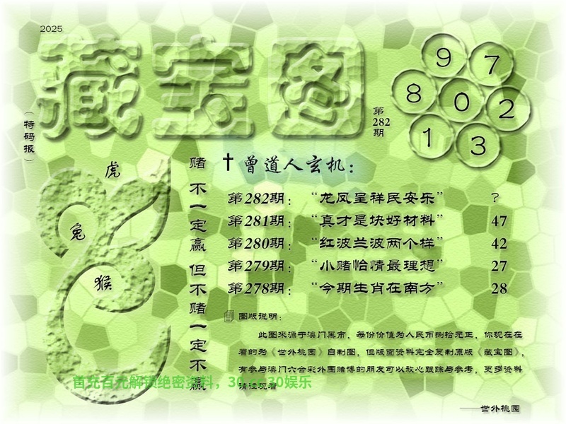 286期藏宝图曾道人玄机:更新 解:更新 解特肖:更新 |